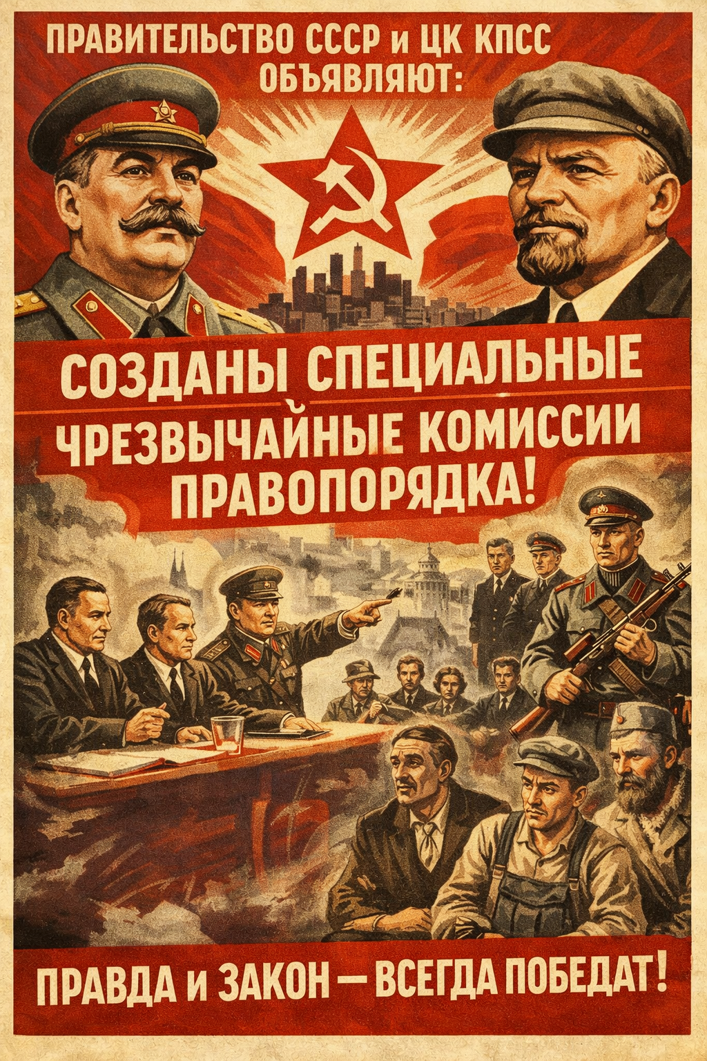В условиях выявленных угроз государственной безопасности и роста незаконной деятельности на территории СССР принято решение о создании специальных чрезвычайных комиссий правопорядка, действующих в рамках законодательства и направленных на оперативное рассмотрение дел особой важности.